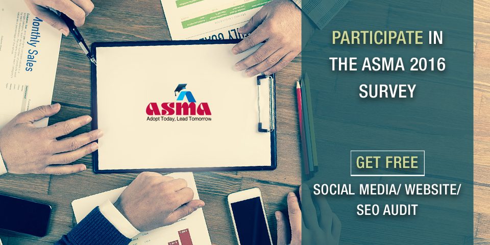 Please participate in this survey to make this initiative a great success and you can avail free copy of upcoming ASMA 2016 report and as well as an option to choose one from these -SEO audit, Website audit, Social Media audit.
