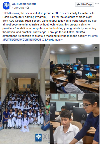 The campaign was promoted over Facebook with a post stating kick-starts of its Basic Computer Learning Program (BCLP) for the students of class eight from ADL Society High School, Jamshedpur today.