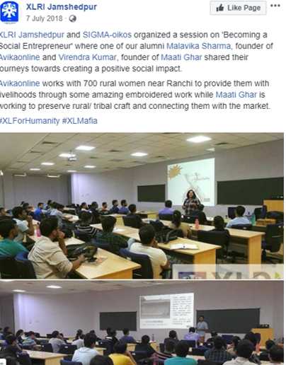 Twitter has been a prominent platform to share stories on the change in society by XLRI. The student support system has been developed to fund small initiatives.