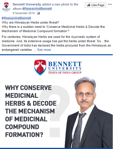Institutes can leverage social media tools to showcase the ongoing research projects, project highlights, and more. It helps them to build the  brand, showcase faculty’s rich experience, the innovative academic culture at the Institute. The campaign was run by Bennett University to promote the exhaustive research by their faculty and institution.