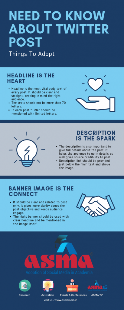 It is important to visualize something then just a simple & plain text. According to research, 78% of an average attention period goes to visual content (picture or snapshot). So, each twitter related post should have an appealing picture related to the area of a post.