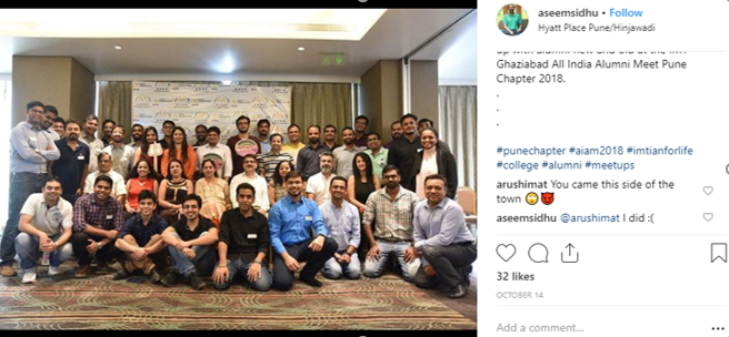 On Instagram, the user-generated content was created. Alumni were asked to post or share their pictures, rejuvenating the memories with hashtag #IMTianforLife. Thereby increase the level of engagement though like, and comments. Important to note that Instagram post is not officially rather use generated post (Alumni), thus creating a sense of belongingness, the essence of friendship is there, which can induce by the comment and description of the post.