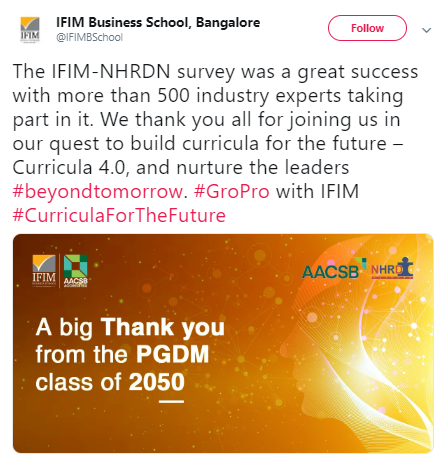 The buzz has been created for increasing the number of participants for curriculum 4.0, they leverage the brand association of NHRDN to enhance the level of engagement. They IFIM and NHRDN come together to create future-ready professionals with Business Education Curricula 4.0.