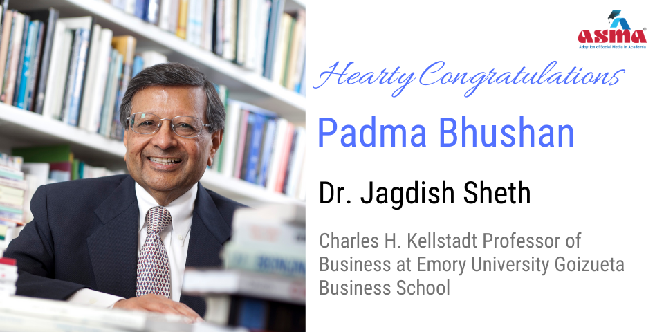 Prof Jagdish Sheth Has Been Nominated For The Conferment of Padma Bhushan - ASMA Academia