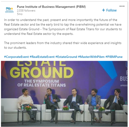 Corporate relationship building is not a daily task but a long-term process drive through nurturing the top management of companies, inviting them in events, sessions, and other knowledge sharing program. Digital Media has made it easier and more sustainable for Institution to connect with corporate for placement, summer internship etc. PIBM with the hashtag #MasterwithPIBM, leverage the power of social media to connect and engage the potential recruiters.
