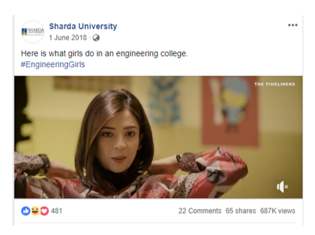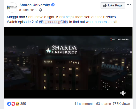 Sharda University adopted the video marketing strategy in a profound manner to Promote and increase the brand awareness about the university and make presence globally. The series was based on student journey from getting admission, celebrating joyful time at campus, focusing on career, learning-rich knowledge, facing day to day challenges, getting administrative supports to creating unforgettable memories.