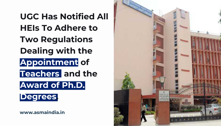 UGC Has Asked All HEIs To Adhere to Two Regulations Dealing with the Appointment of Teachers and the Award of Ph.D. Degrees.